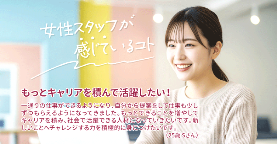 本人の目標もはっきりしてきて、いろいろな研修会に自分から進んで参加し他のスタッフにも一緒に行くように声掛けをしてくれます。