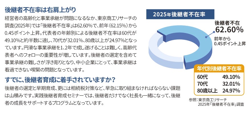 このセミナーでは、そういった成功企業の事例を交え、具体的かつ実践的に事業承継に向けてやるべきことを明らかにしていきます。