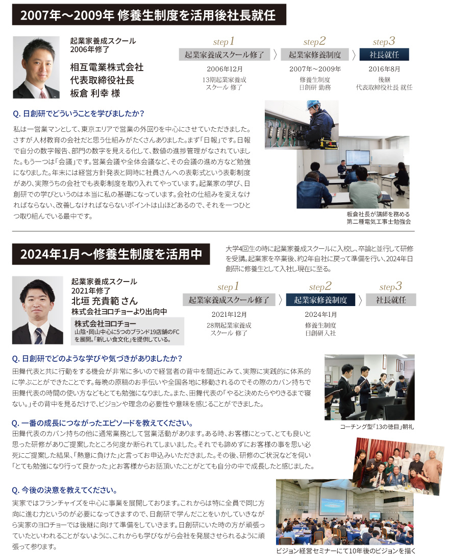就業期間中に日創研が主催する「起業家養成スクール」の受講料を積み立て、