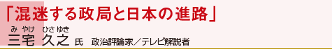 【プロフィール】 1953年、大学卒業後、毎日新聞社へ入社。政治部副部長、静岡支局長、特別報道部長を歴任し、1976年に毎日新聞社を 退職後、フリーの政治評論家となる。その後、コメンテーターとして歯に衣着せぬ辛口評論でお茶の間の人気を博した。現在 は、テレビ朝日「ビートたけしのTVタックル」や読売テレビの「たかじんのそこまで言って委員会」などにレギュラー出演中。 |