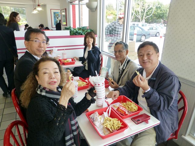 一件目の視察先は、昼食を兼ねて、カリフォルニア州をはじめ、南西部や中部にハンバーガーショップを300店舗をチェーン展開しているインアンドアウトバーガーに参りました。